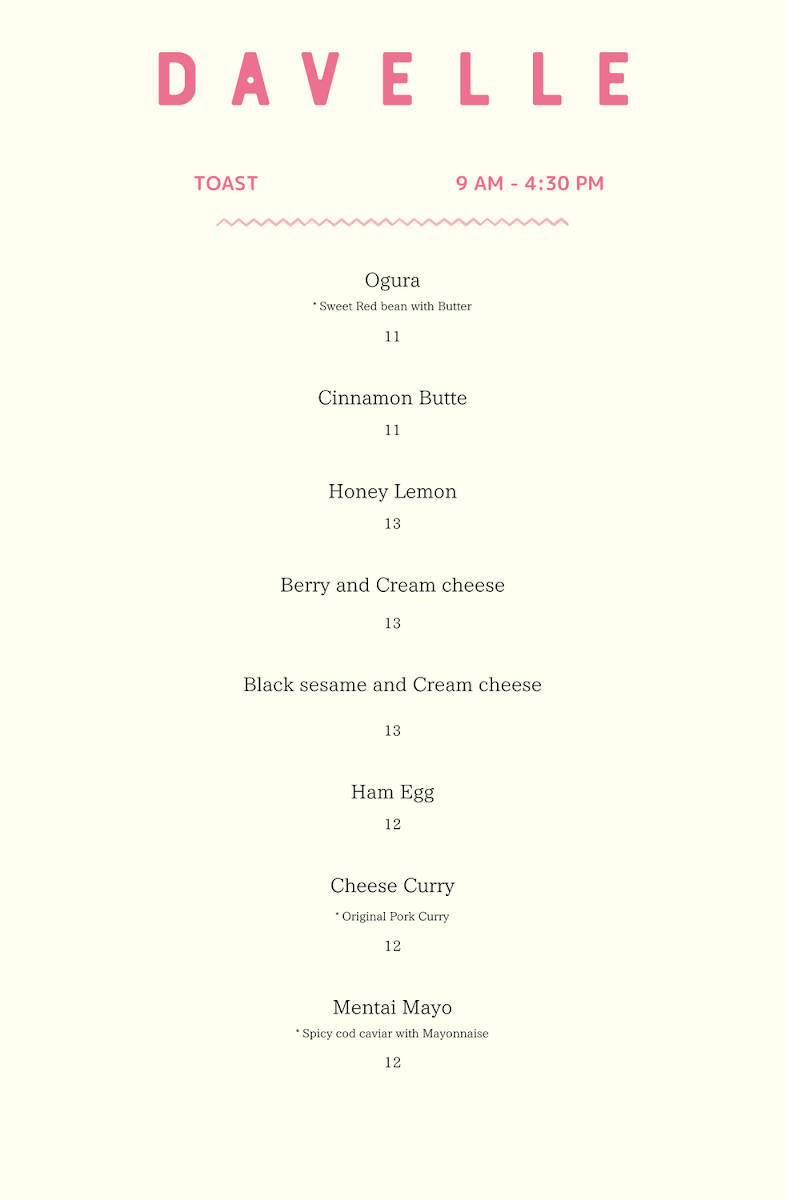 Davelle Menu